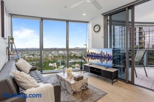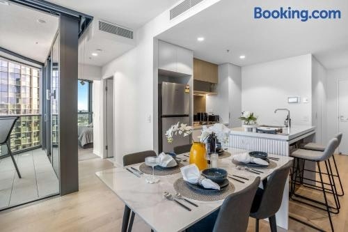 In a central area of Brisbane, located within a short distance of Streets Beach and City Botanical Gardens, Your QW Escape - Pool Gym & Stunning Sky View offers free WiFi, air conditioning and household amenities such as a fridge and kettle.