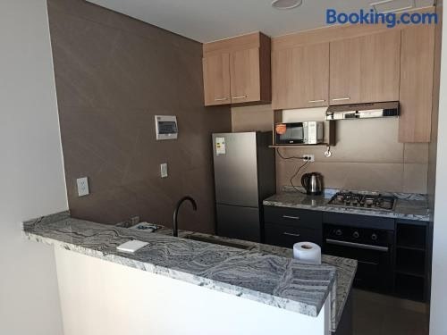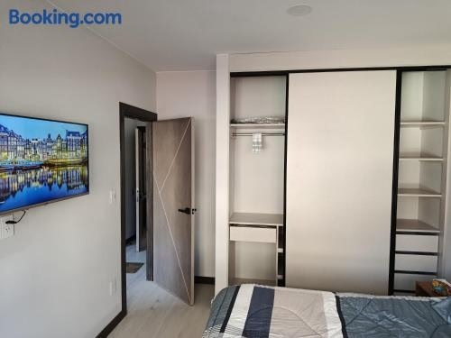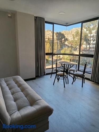 Featuring garden views, Departamento a estrenar excelente ubicacion Achumani features accommodation with a terrace, around 2.5 km from Irpavi Teleferico Station. The property is located 5.9 km from 17 de Obrajes Teleferico Station, 7.