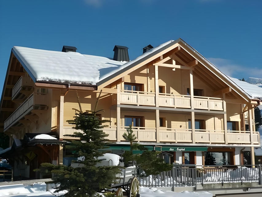 Set in a typical wooden building, this 4-star hotel is located a 5-minute drive from the village of Manigod and La Clusaz. It offers ski-to-door access and free Wi-Fi access and mountains views in the guest rooms.