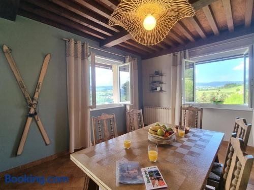Featuring mountain views, Maison cosy avec jardin et jeux extérieurs - FR-1-496-291 offers accommodation with a garden and a balcony, around 31 km from Feurs hippodrome.