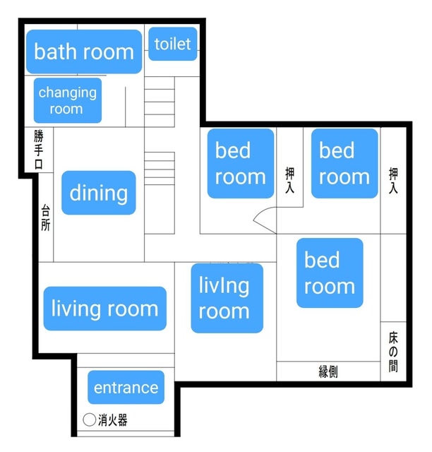 The owner is present at the inn, and you will be sharing the house with the host. There are two private rooms (for two people each), one large Japanese-style room (with six futons) that can accommodate up to ten people. You can use the entire first floor freely. The kitchen is always open, and you can bring your own ingredients! (The owner is on the second floor. Please note that the toilet and other facilities are shared.) The air conditioner is a spot cooler.