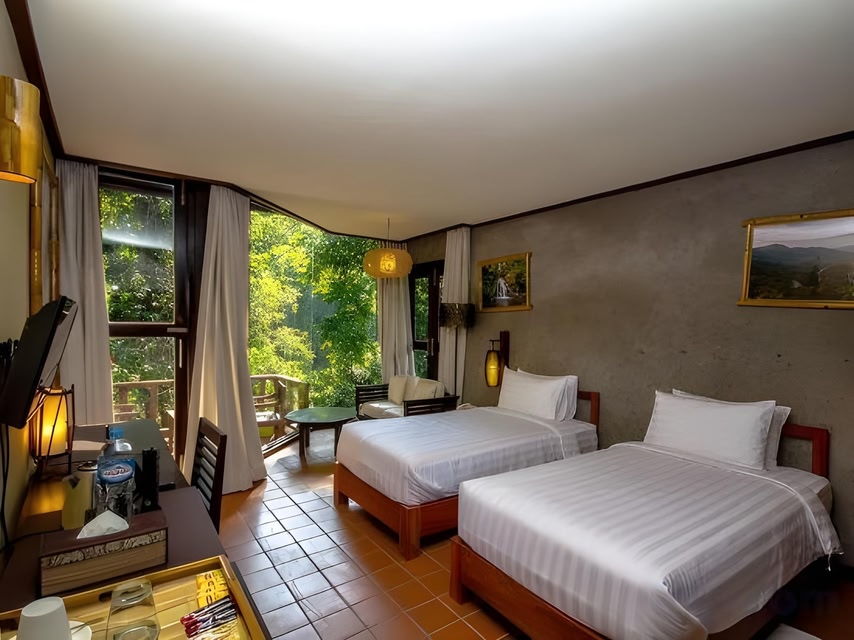Namkat Yorla Pa Resort has an outdoor swimming pool, fitness centre, a garden and terrace in Ban Kat. Among the facilities of this property are a restaurant, a shared kitchen and room service, along with free WiFi.