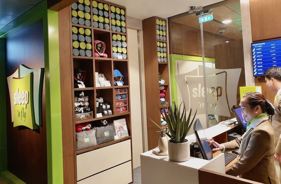 Conveniently located in the heart of Hamad International Airport’s transit area, at a 2-minute walk from the iconic Teddy Bear sculpture, the property operates on a pay-by-the-hour concept with specific check-in/out time slots around the clock. WiFi is available in public areas and is free of charge. Sleepover Doha South Node - formerly sleep 'n fly Hamad International Airport (Transit Area) features state-of-the-art FlexiSuite Sleep Pods, in addition to YAWN Double and Bunk Cabins, some of which come with a pull-out kids’ bed for an extra charge. After check-in, guests are escorted to the Sleep Pod/Cabin by one of the hostesses. Guests can use the public restrooms that are located just outside the Sleep Lounge. Showers are available for an extra charge at only a few minutes' walk away from the Sleep Lounge.