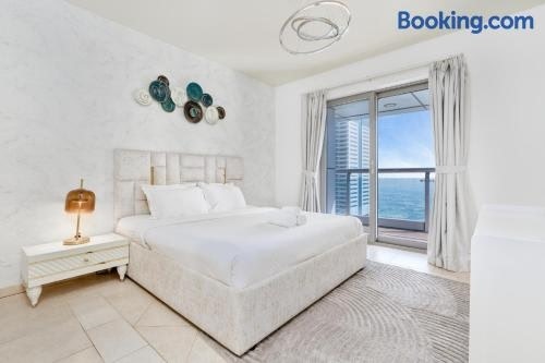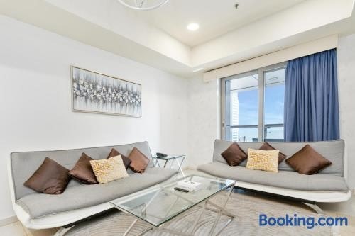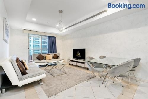In the Dubai Marina district of Dubai, close to Marina Beach, Ahlan HH - Princess Tower - Elegant 1BR in Dubai Marina has a fitness centre and a washing machine.