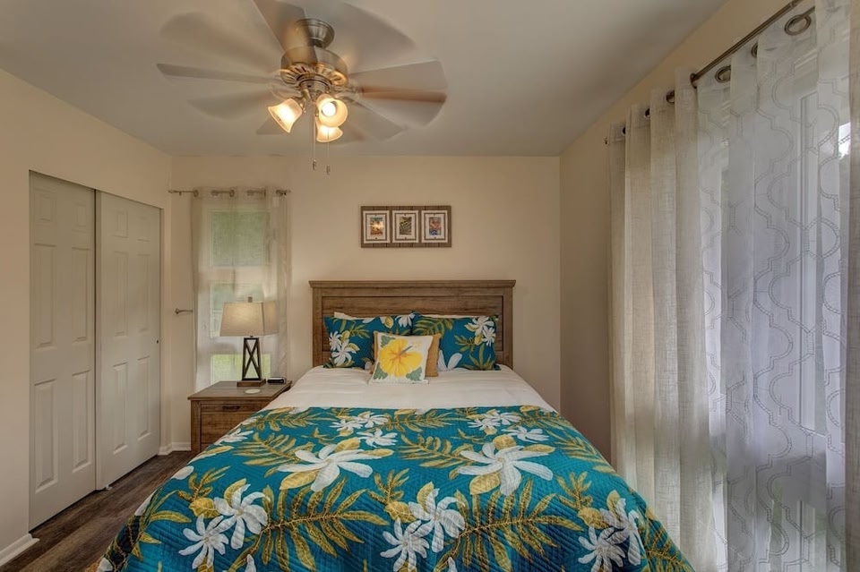 Located in Hilo, this vacation home is next to a golf course. Lyman Museum and Imiloa Astronomy Center are cultural highlights, and travelers looking to shop may want to visit Hilo Farmers Market and Hilo Shopping Center. Gilbert Carvalho Park and Joint Astronomy Centre are also worth visiting. Discover the area's water adventures with sailing nearby, or enjoy the great outdoors with hiking/biking trails and cycling. A short distance from sailing, cycling, and more, this smoke-free vacation home lets you experience it all. Make short work of the 6-minute drive to Rainbow Falls or the 4-minute drive to Kaumana Caves Park. Relax in the garden or sip a drink on the porch or lanai of this vacation home. As for the great indoors, you can come inside and enjoy the free WiFi and Smart TV. A BBQ grill and a ceiling fan are featured at this 3-bedroom, 2-bathroom rental. No need to pay for a restaurant every night, when you've got an oven and a refrigerator on hand, as well as a coffee maker and a toaster. And thanks to the washer and dryer, you'll even be able to travel light.